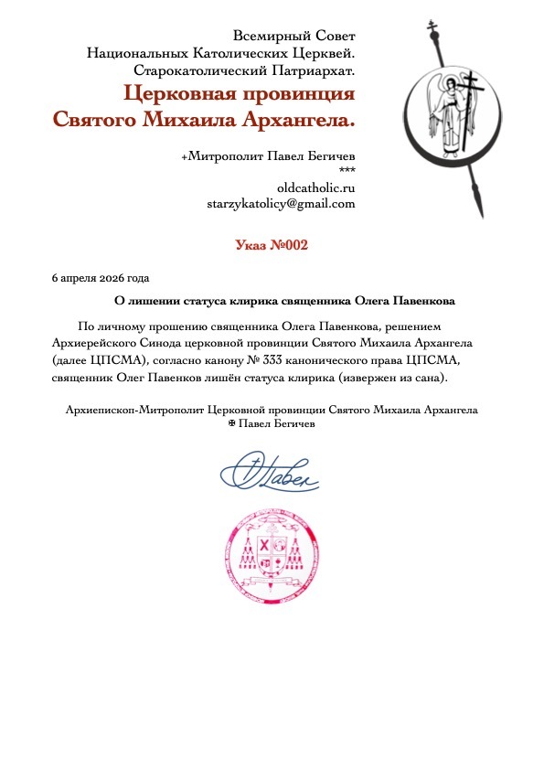 Лишение статуса клирика священника Олега Павенкова