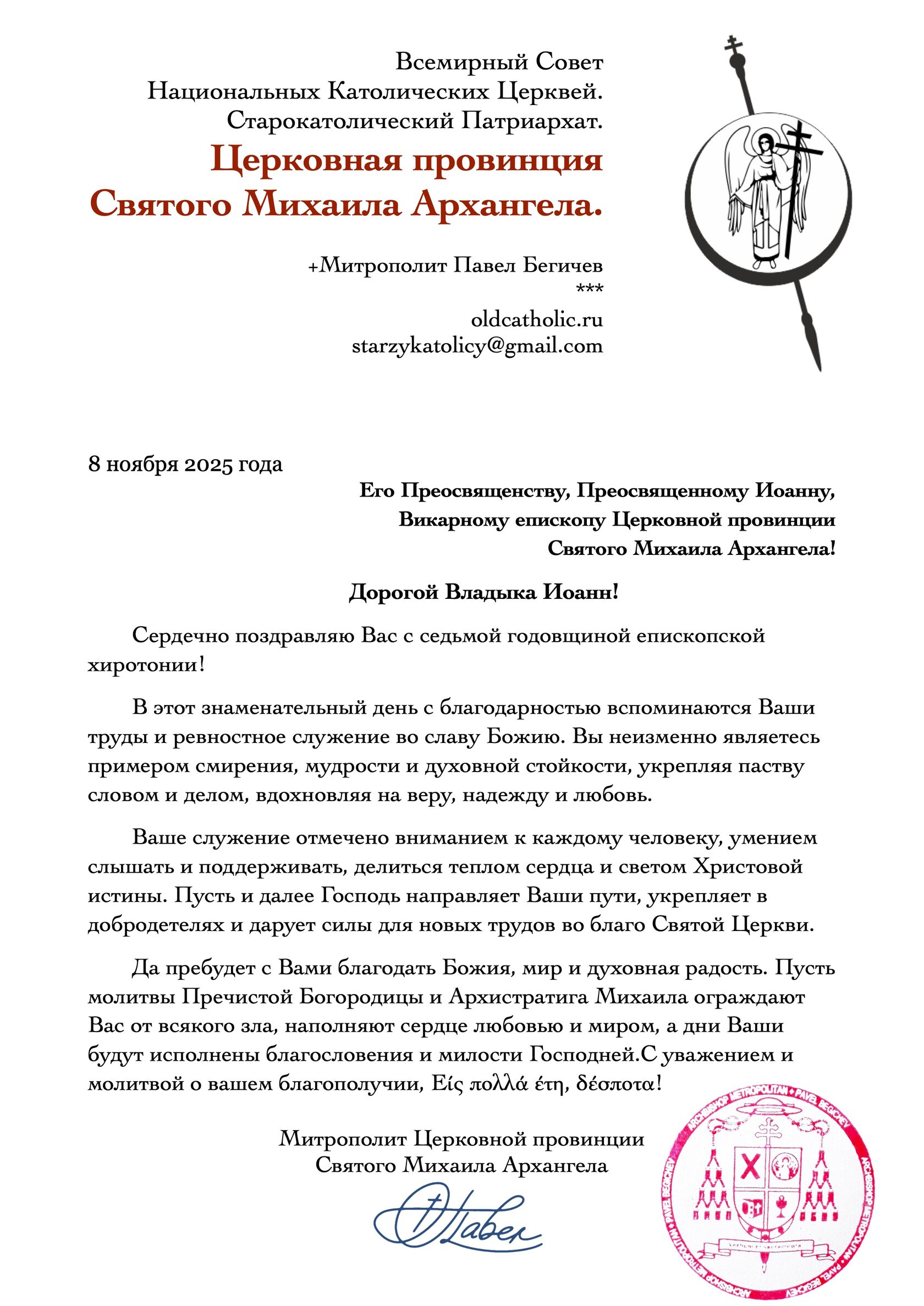 Поздравление с седьмой годовщиной епископской хиротонии Вл. Иоанна Пономарева